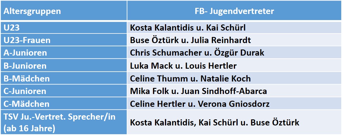 Nach der Satzung § 13 Wahl Jugendvertreter/in u. Stellv. wurden folgende Jugendliche in die erste FB-Jugendvertretung gewählt.