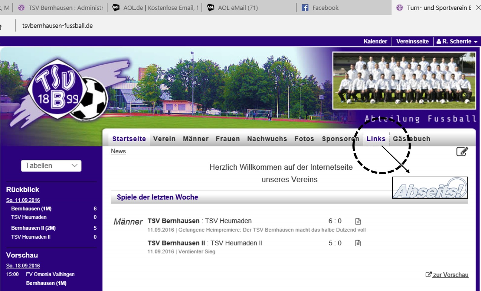Neu: Link auf Homepage "Abseits" der Schiedsrichter
