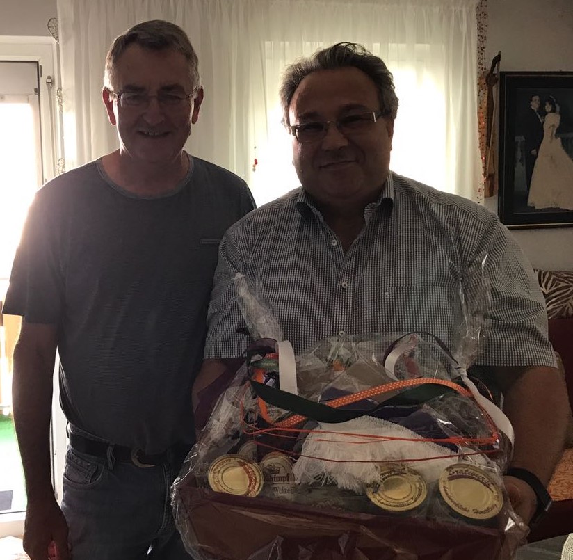 Als kleiner Dank der großen lila Gratulantenschar brachte AH-Leiter Rudi Scherrle ein Geschenk vorbei.