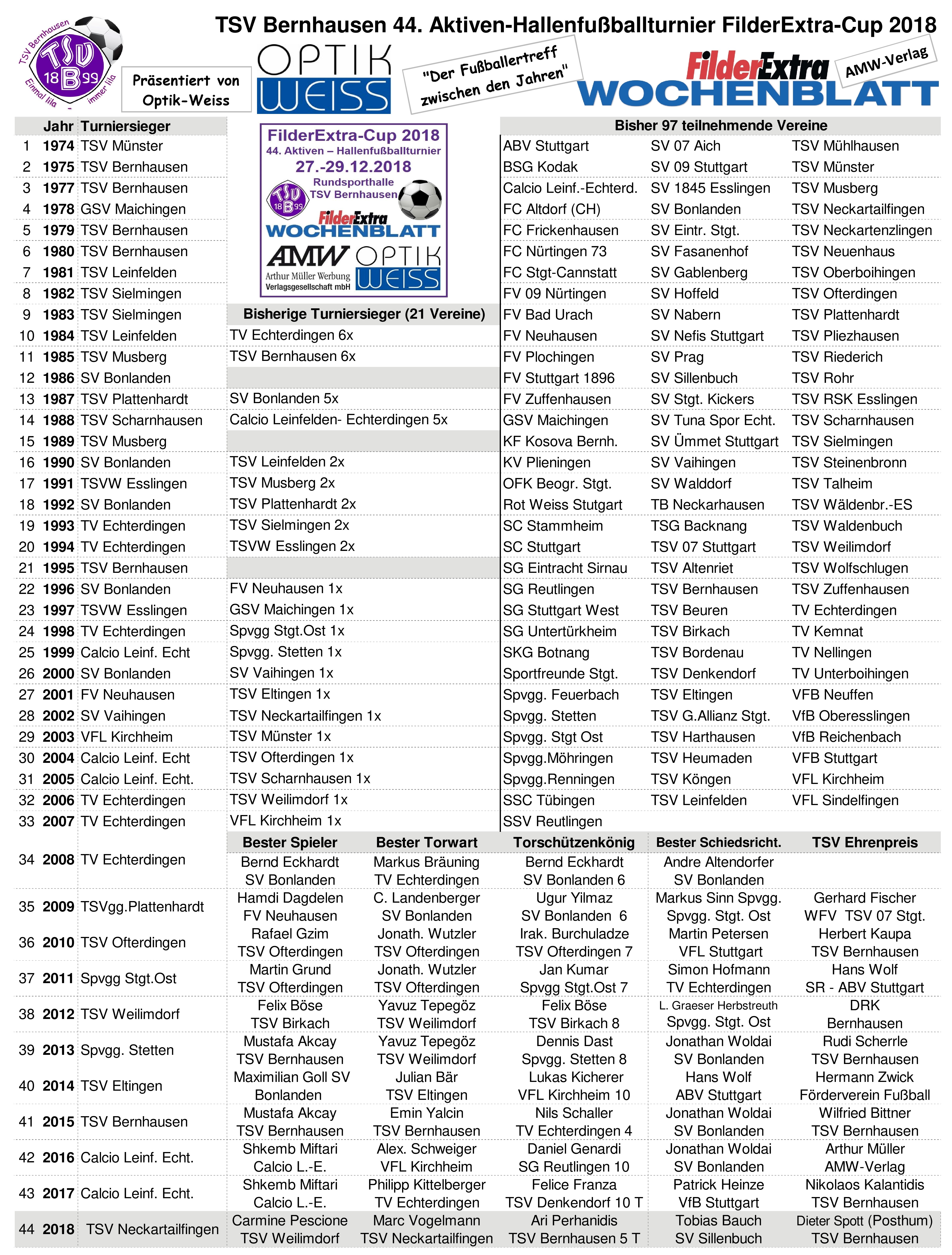Guter Bericht der Filder-Zeitung. Statistik der bisherigen 44 Turniere