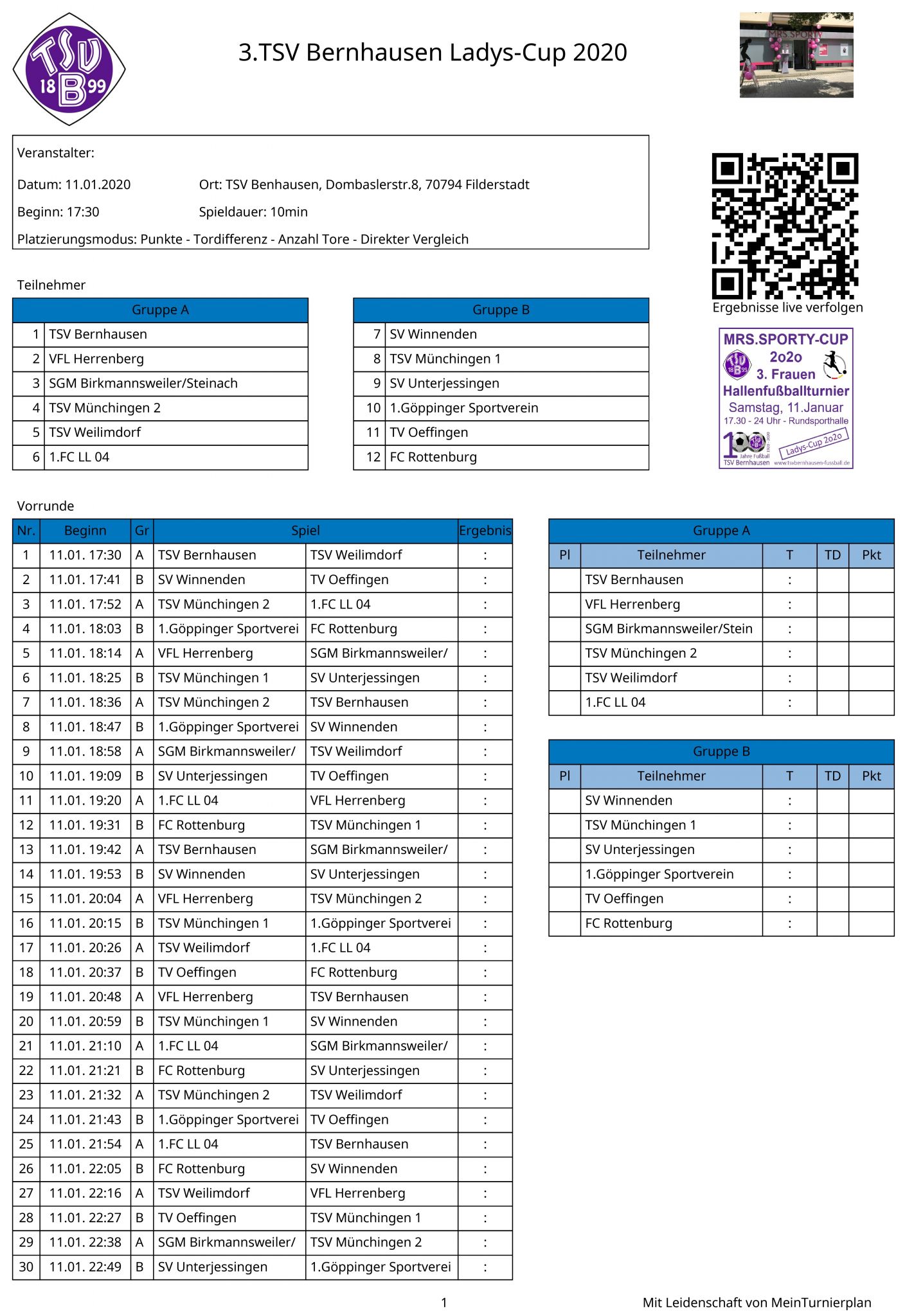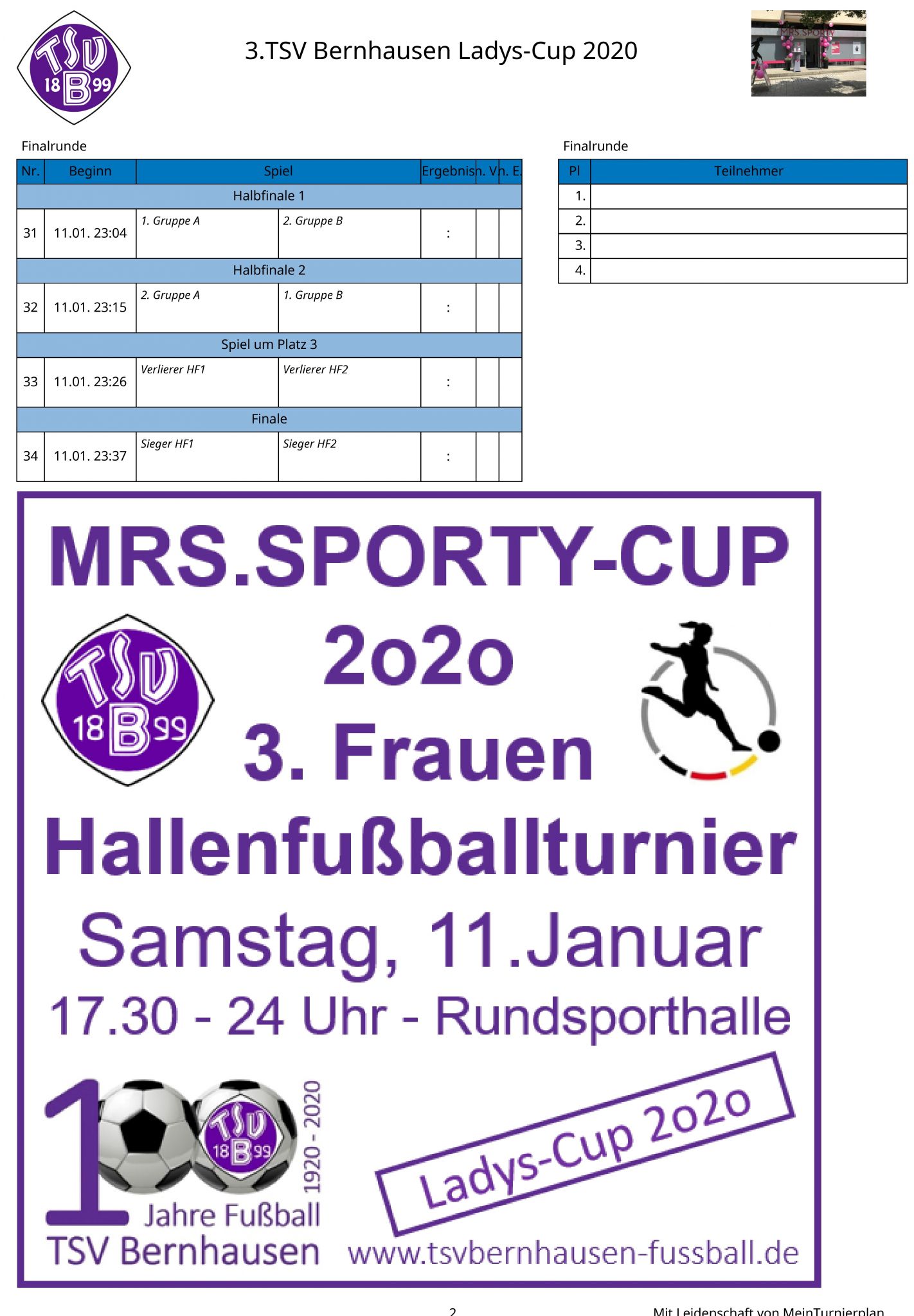 3.Bernhauser Ladies Hallenturnier 11.1. ab 17.30 Uhr