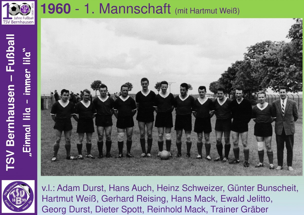 101 Jahre lila Fußballgeschichte -1960 1. Mannschaft mit dem jungen Hartmut Weiß