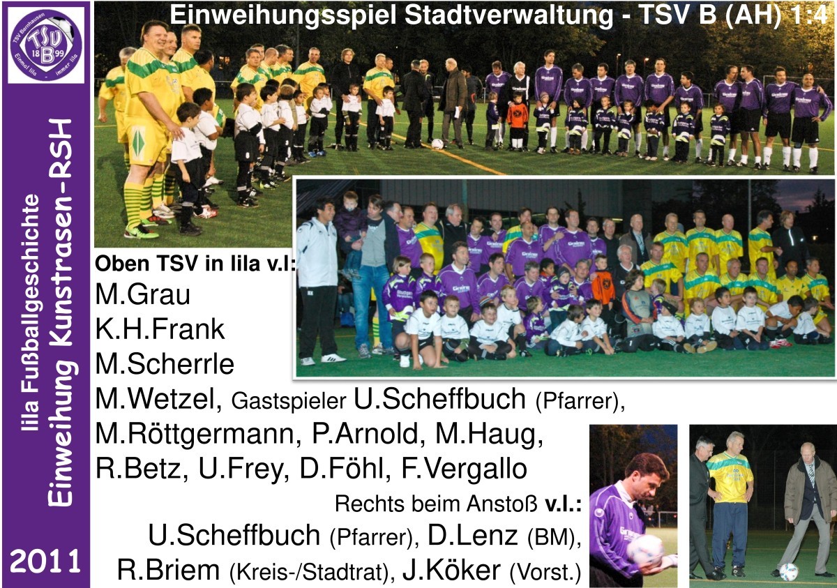 Mit einem Spiel Stadtverwaltung gegen TSV Bernhausen AH wurde der Kunstrasen RSH eingeweiht. Bei der AH spielte Pfarrer Scheffbuch als Gastspieler mit.