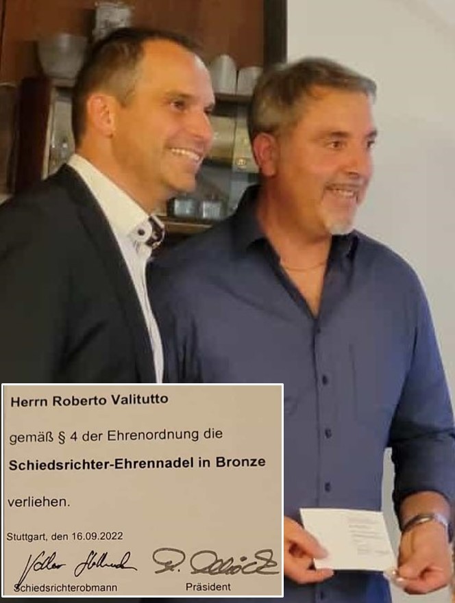 Schiedsrichter-Ehrennadel in Bronze - Glückwunsch Roberto Valitutto