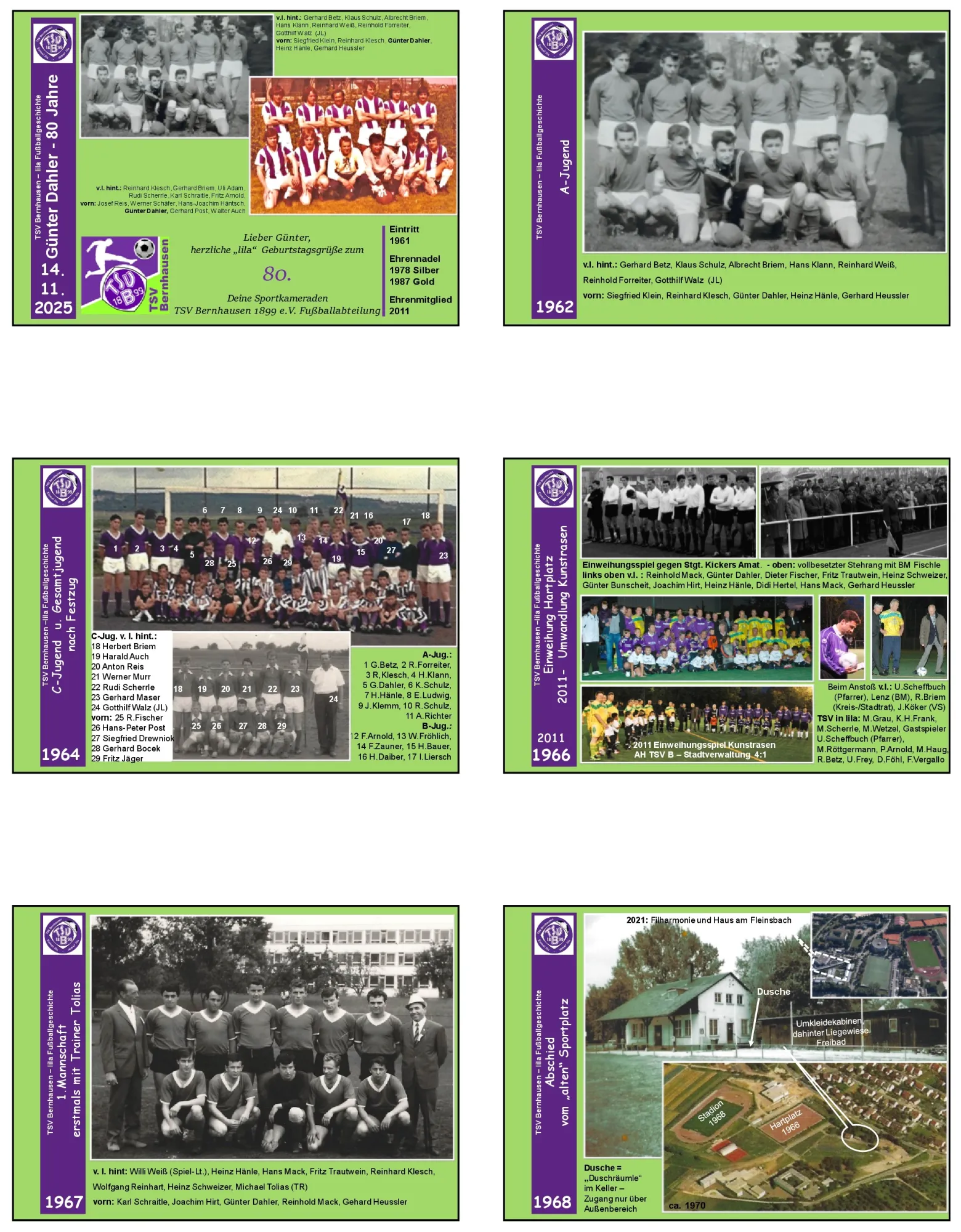 Günter ist seit 1961 (1957) Mitglied, war Jugend-, Aktiven- und AH- Spieler und Schiedsrichter sowie Helfer beim Bau des Clubhauses und bei vielen Veranstaltungen.