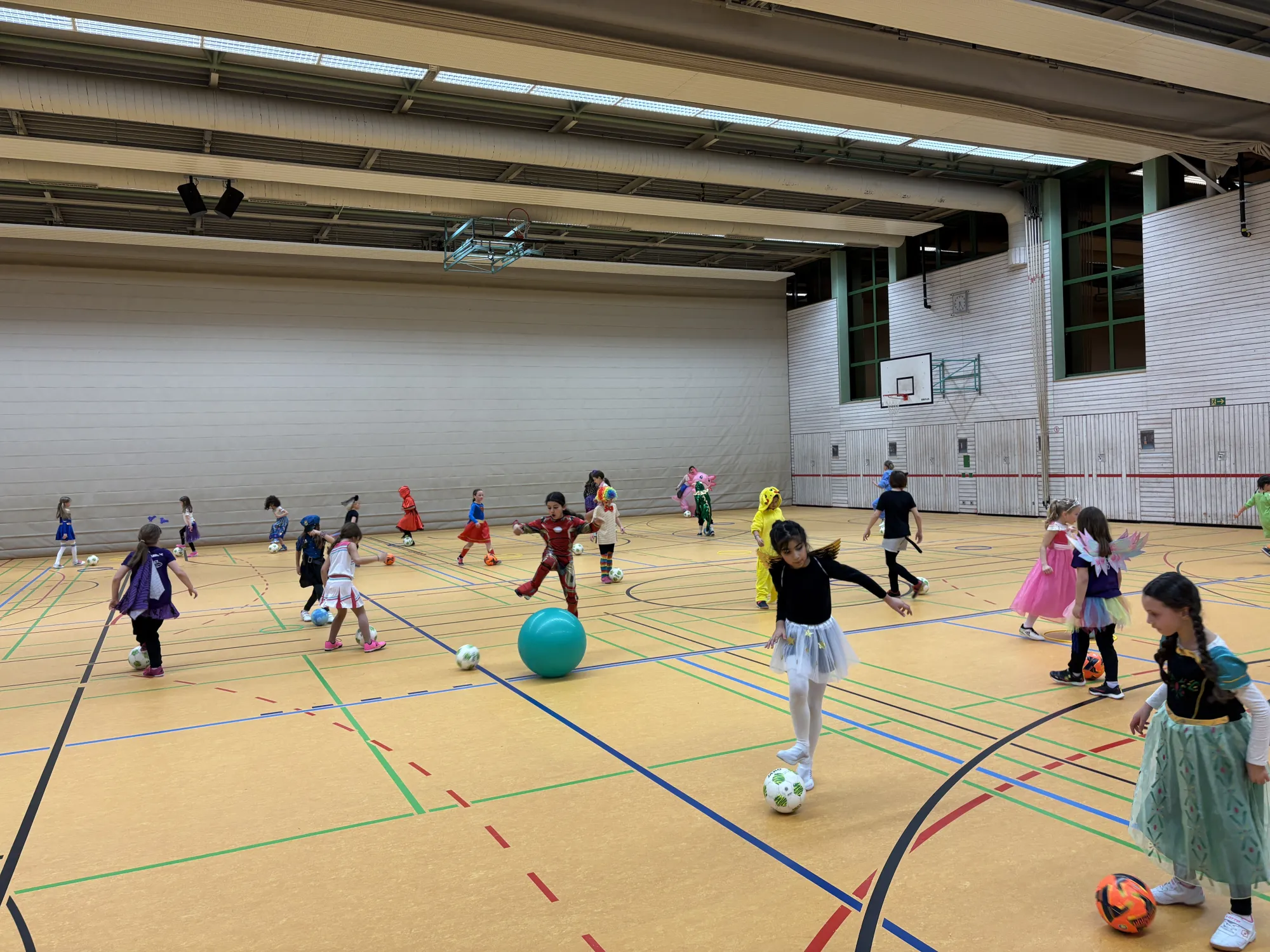In 1,5 Stunden versuchten sich die kleinen Vampire, Cowgirls, Cheerleader, Prinzessinnen, Pokemons usw. bei kleinen Spielchen mit Ball.