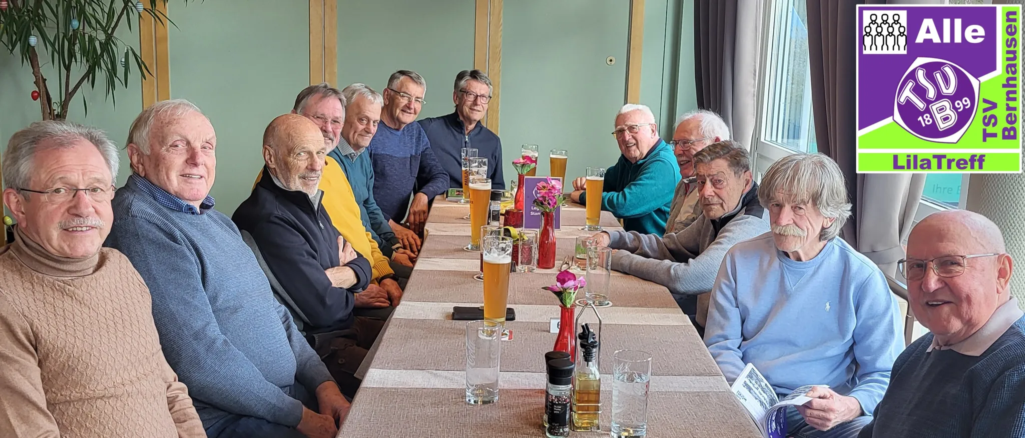 Unser 156. „LilaTreff“ war ein voller Erfolg: Bei bestem Frühlingswetter genossen 12 Teilnehmer die gesellige Runde. Besonders gefreut haben wir uns über eine Premiere: Rolf Schmider, der frühere AH-Leiter, war zum ersten Mal dabei und ist damit der 99. Teilnehmer in der Geschichte unserer Treffen seit 2010.